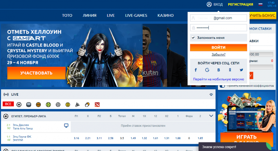 Также зарегистрированные игроки могут смотреть историю ставок и обращаться к службе поддержки при возникновении вопросов. Наконец, недавно на портале появилась возможность просмотра прямых трансляций различных событий, проходящих в режиме лайва.